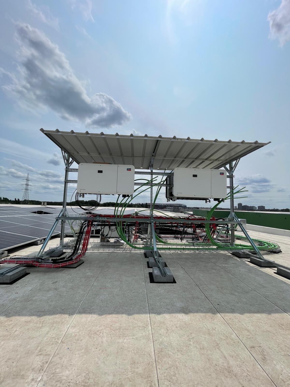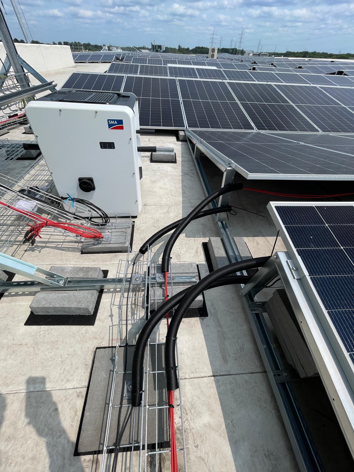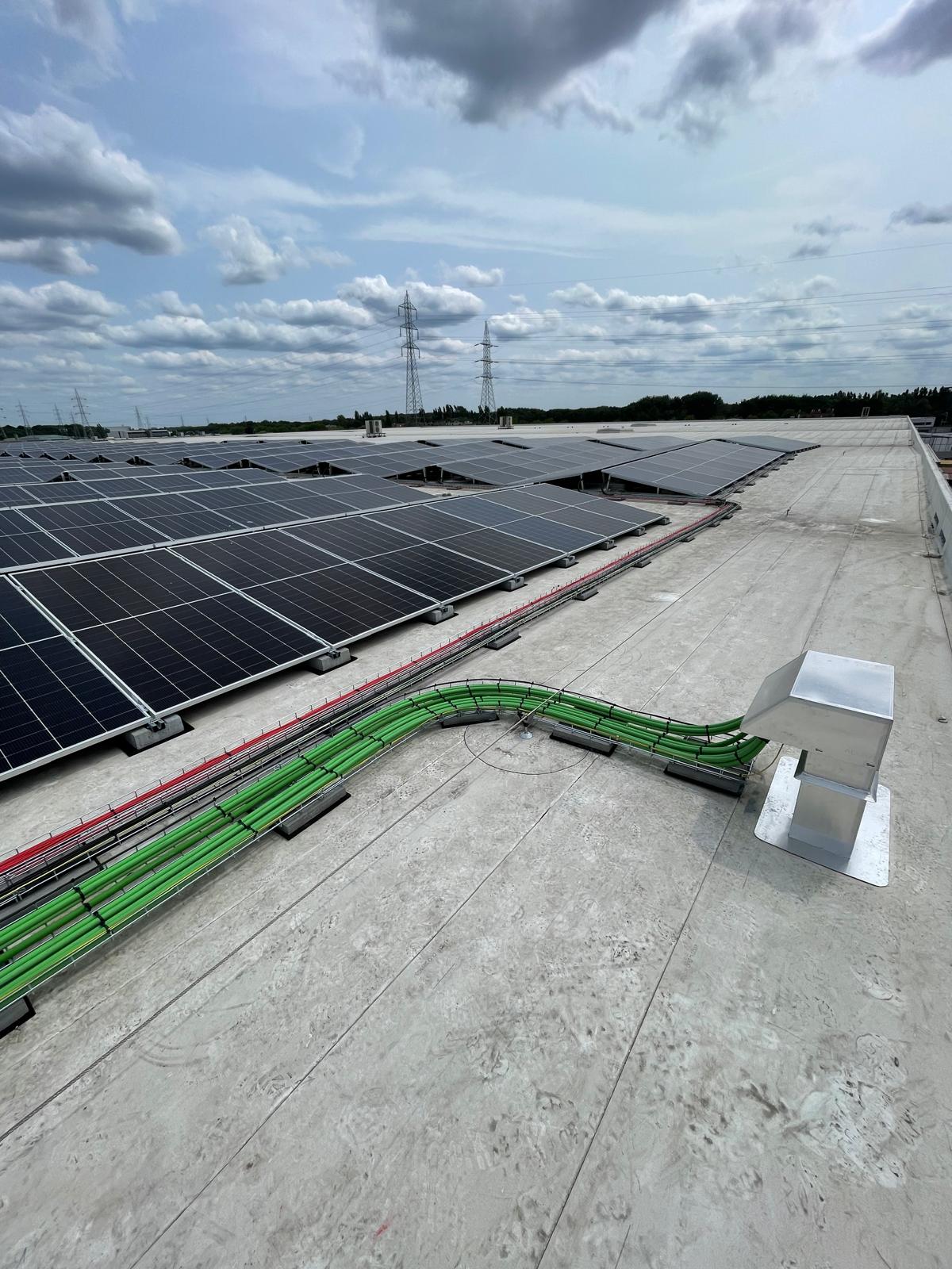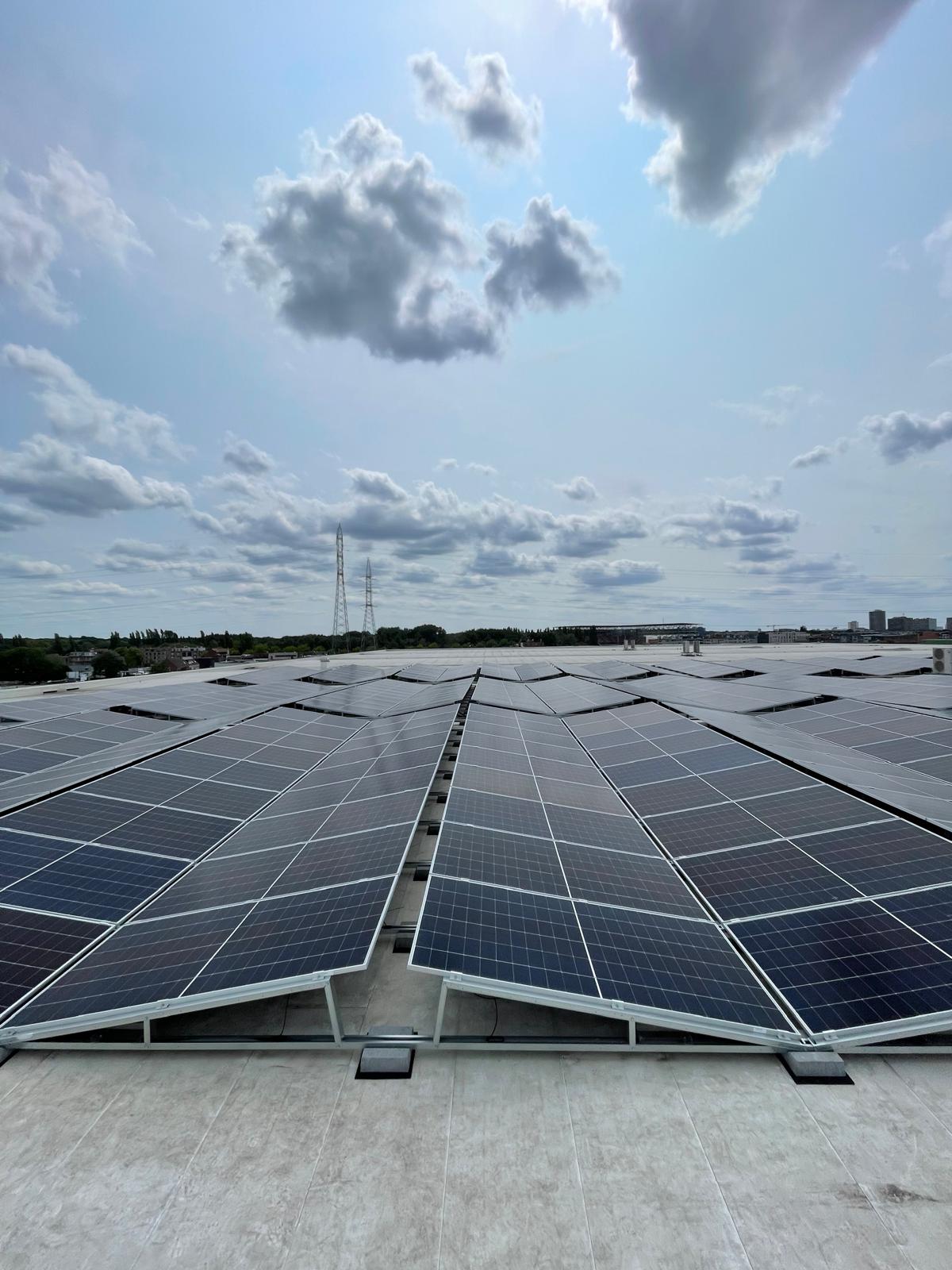 A project we work on in Schoten. The total number of panels is 1808, with an expected capacity of 303 kWp. We completed this project in May.
