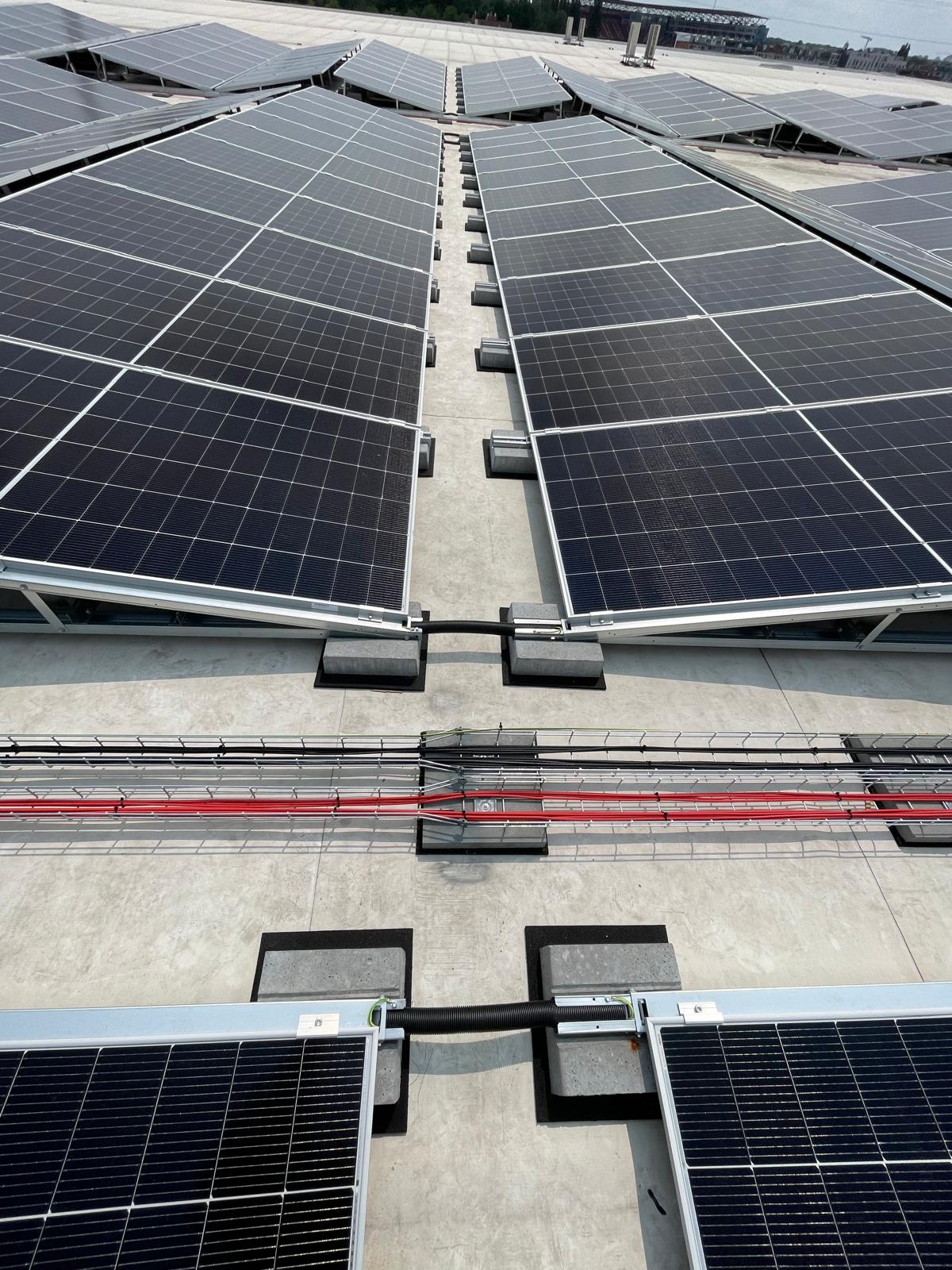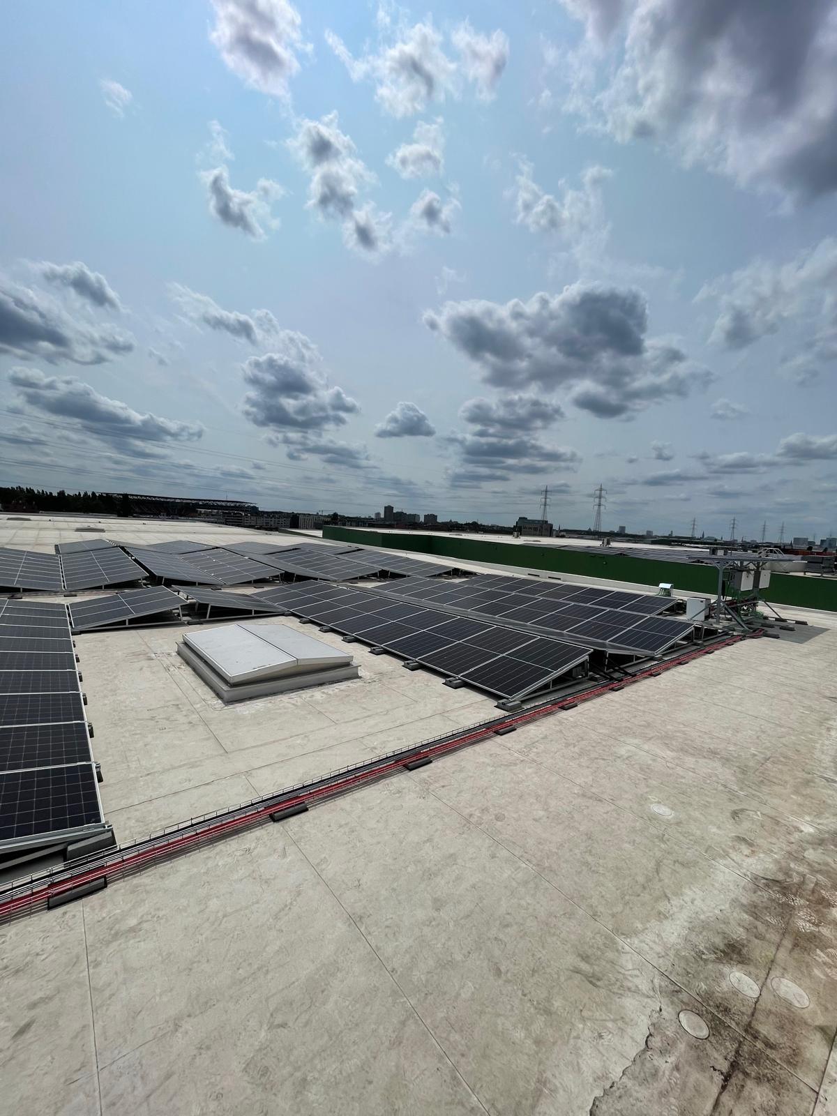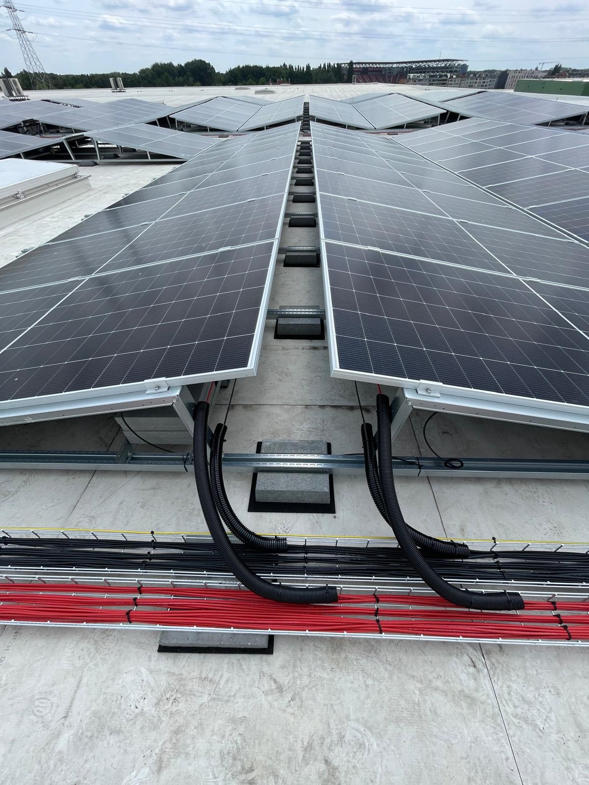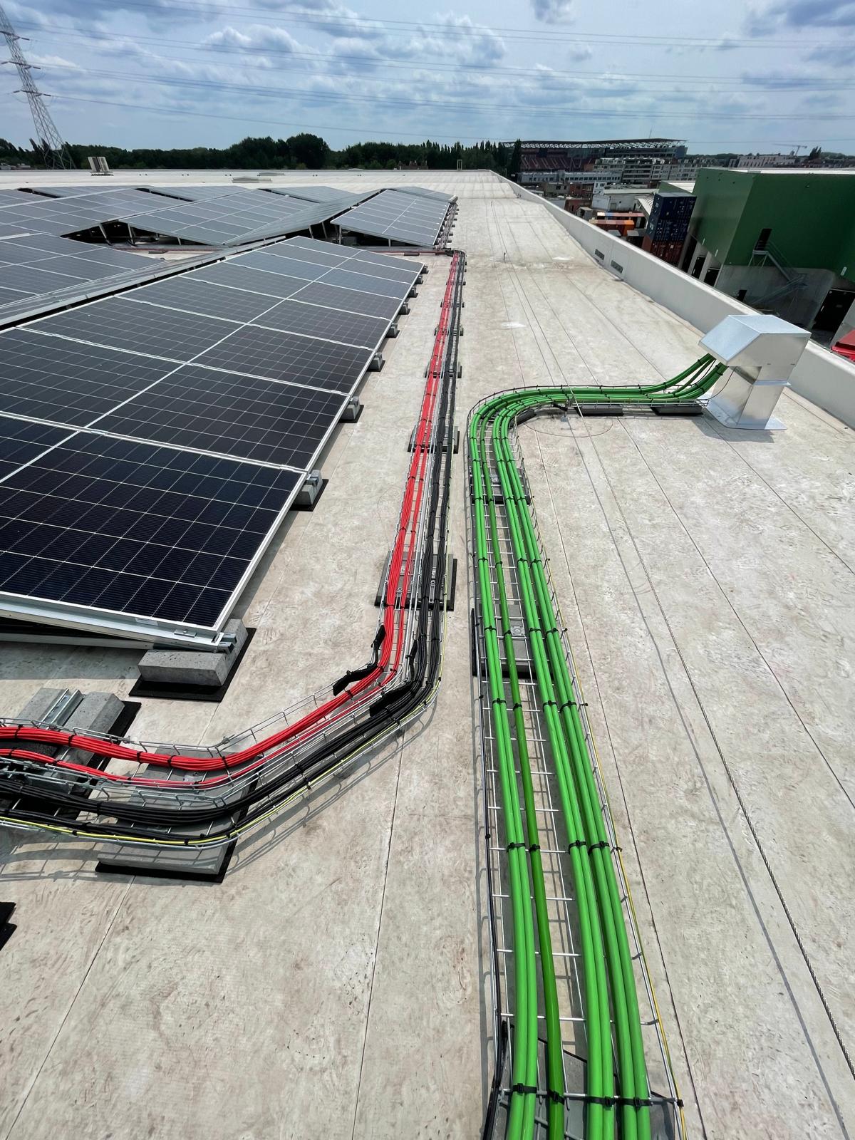 A project we work on in Schoten. The total number of panels is 1808, with an expected capacity of 303 kWp. We completed this project in May.