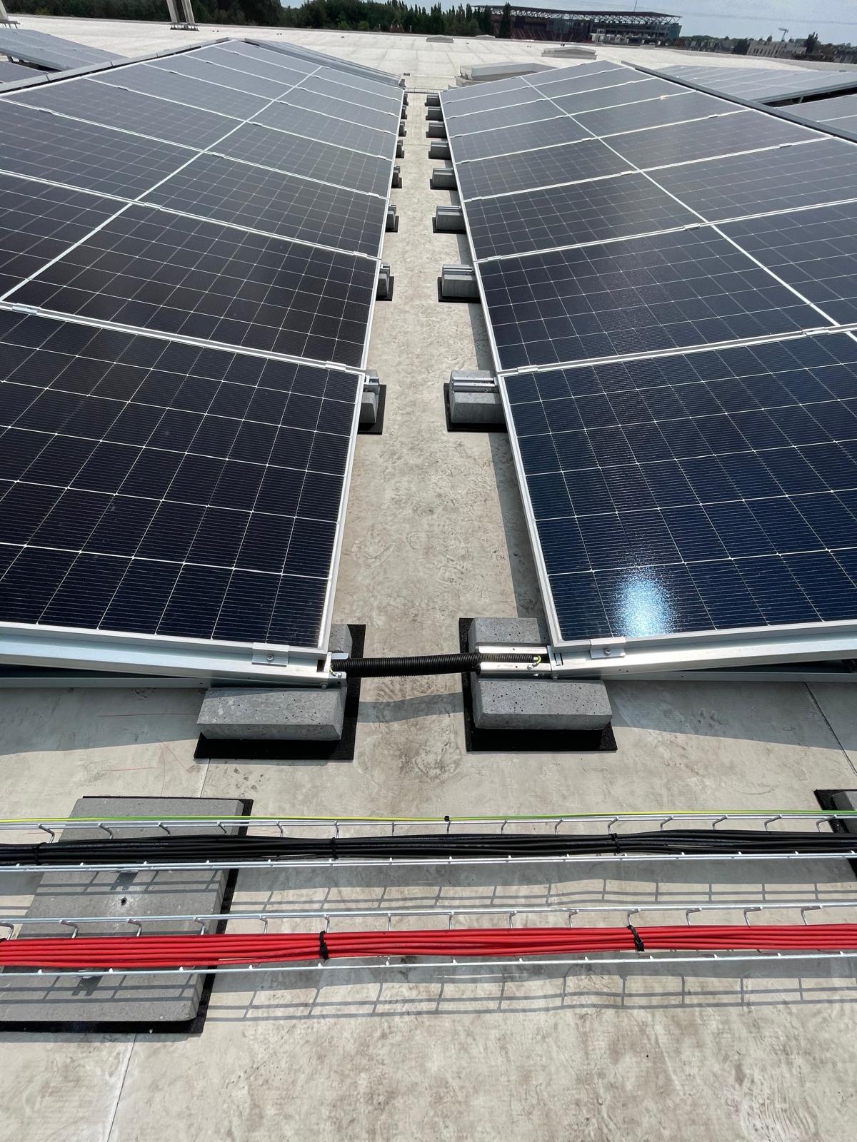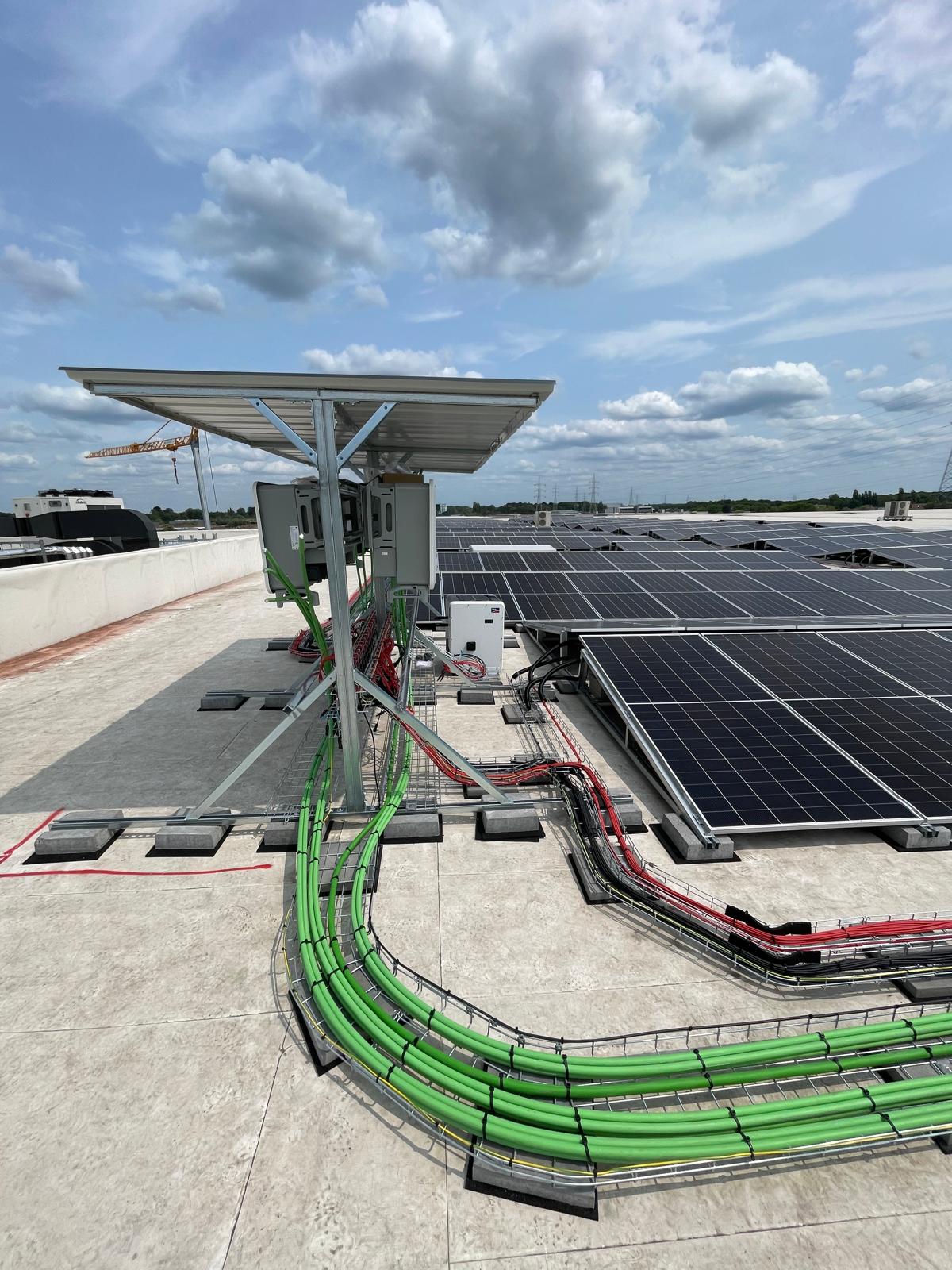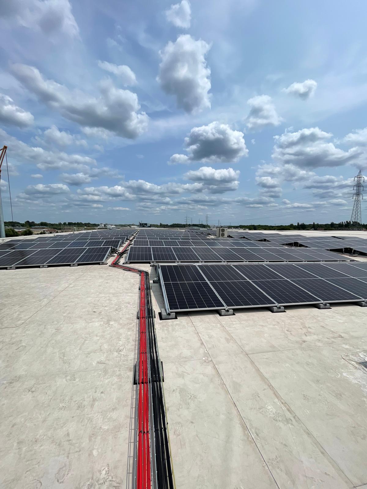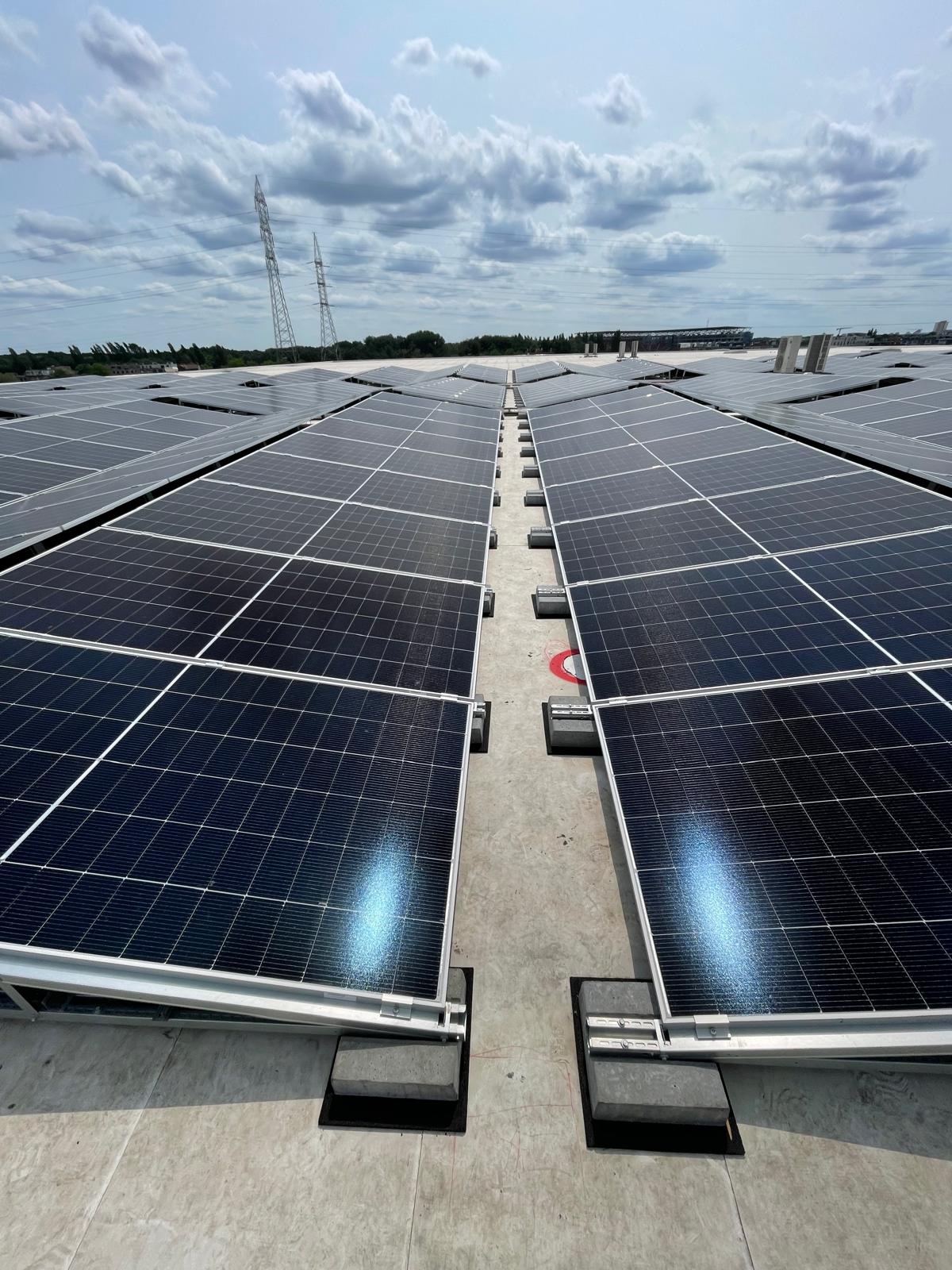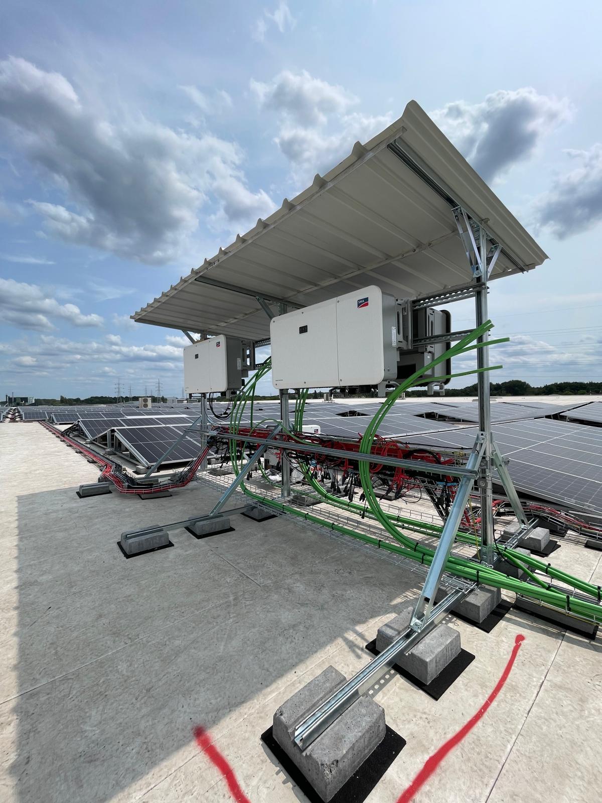 A project we work on in Schoten. The total number of panels is 1808, with an expected capacity of 303 kWp. We completed this project in May.