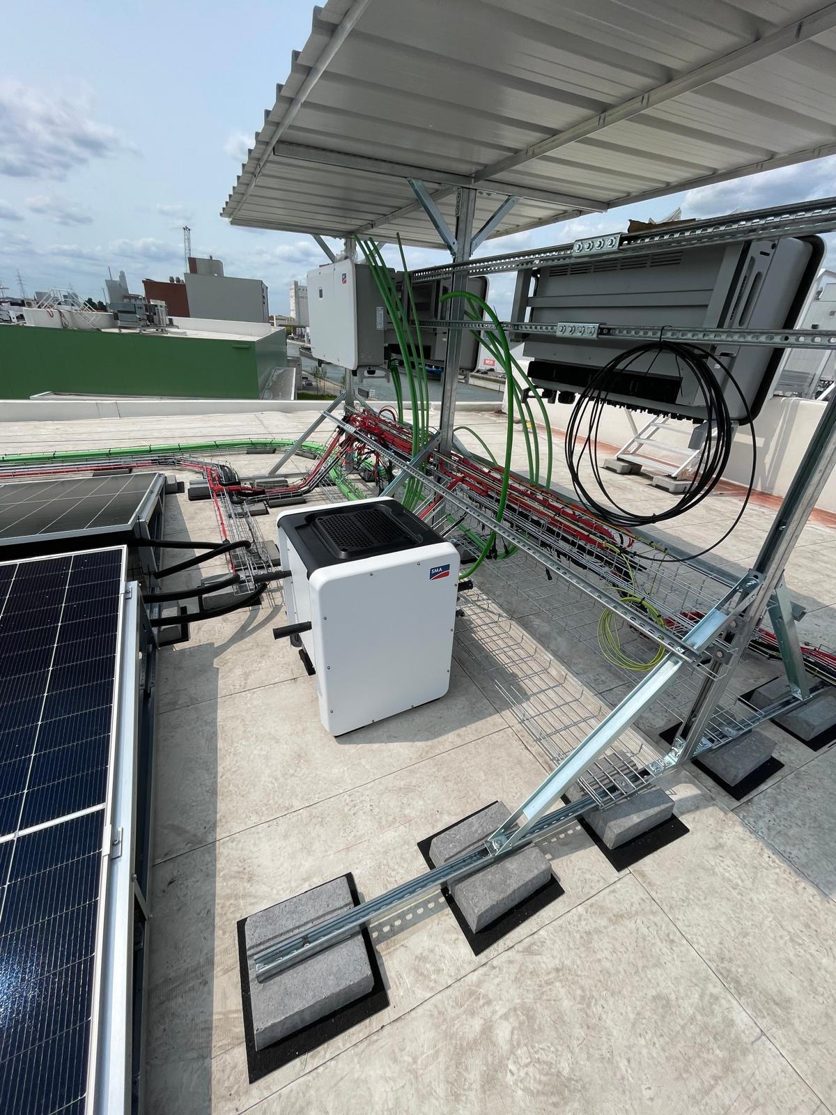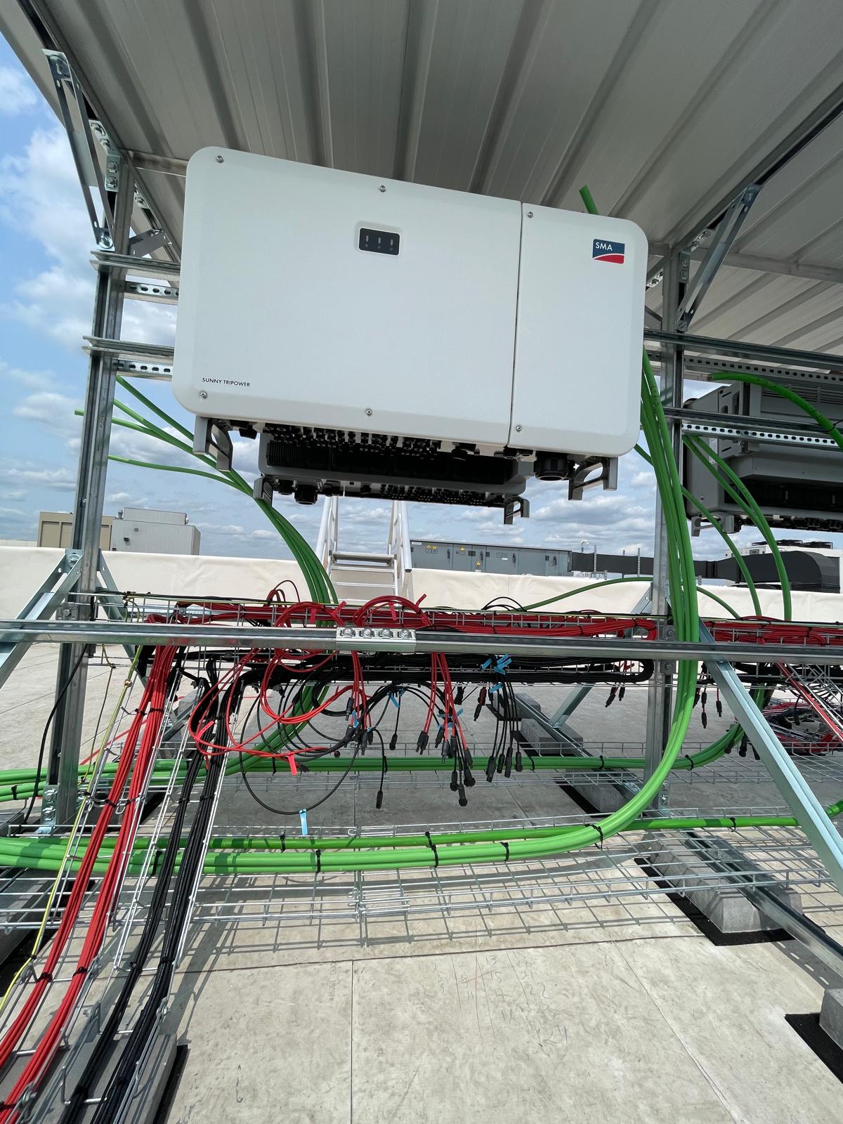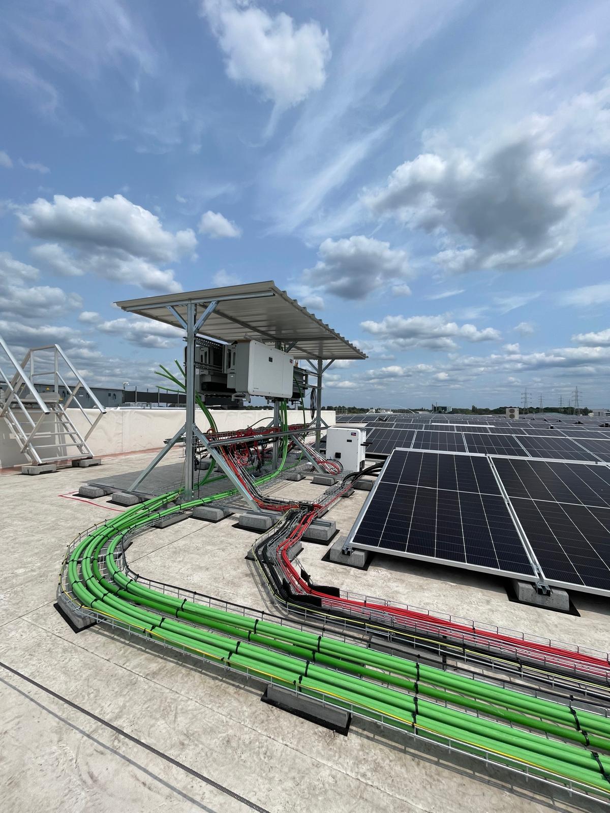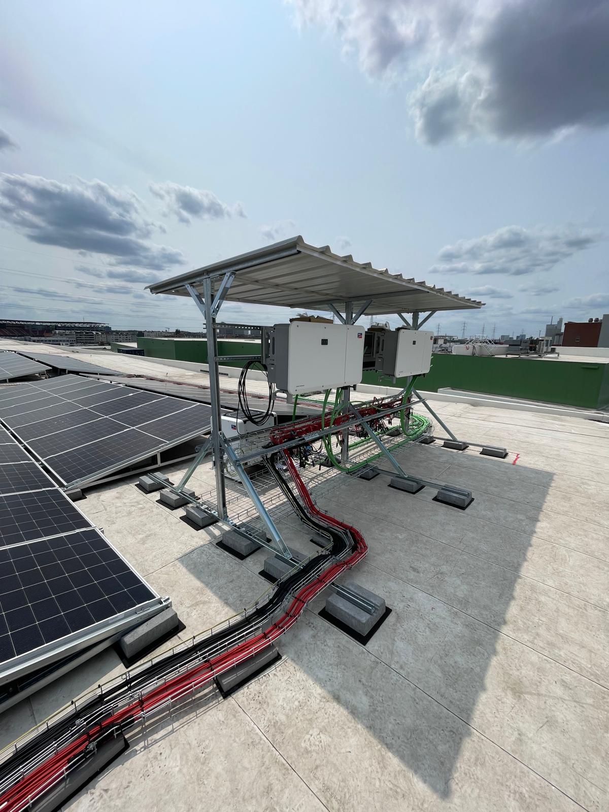 A project we work on in Schoten. The total number of panels is 1808, with an expected capacity of 303 kWp. We completed this project in May.